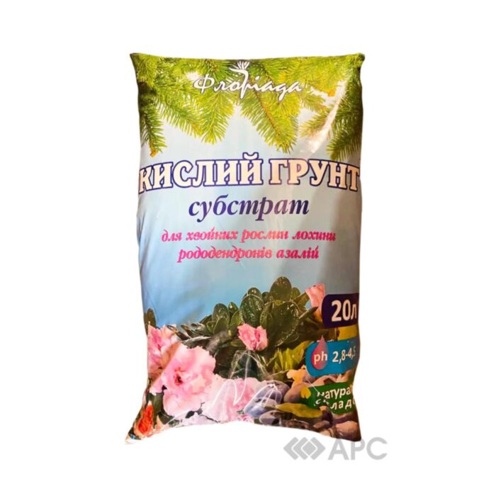 Кислый грунт Флориада 20 л — специальная смесь для выращивания хвойных растений, цветов, ягодных культур, в частности гортензий, азалии, рододендрона, калины, папоротника, вереска, голубики, черники, брусники и т.д. Имеет сбалансированный и питательный состав на основе верхового торфа с сосновой корой. Субстрат содержит ряд микро- и макроэлементов, обусловливающих быстрый рост и развитие здоровых растений (азот, калий, фосфор, цинк, медь, марганец, железо и многие другие). Фракционность — 5-25 мм. Почва готова к использованию.