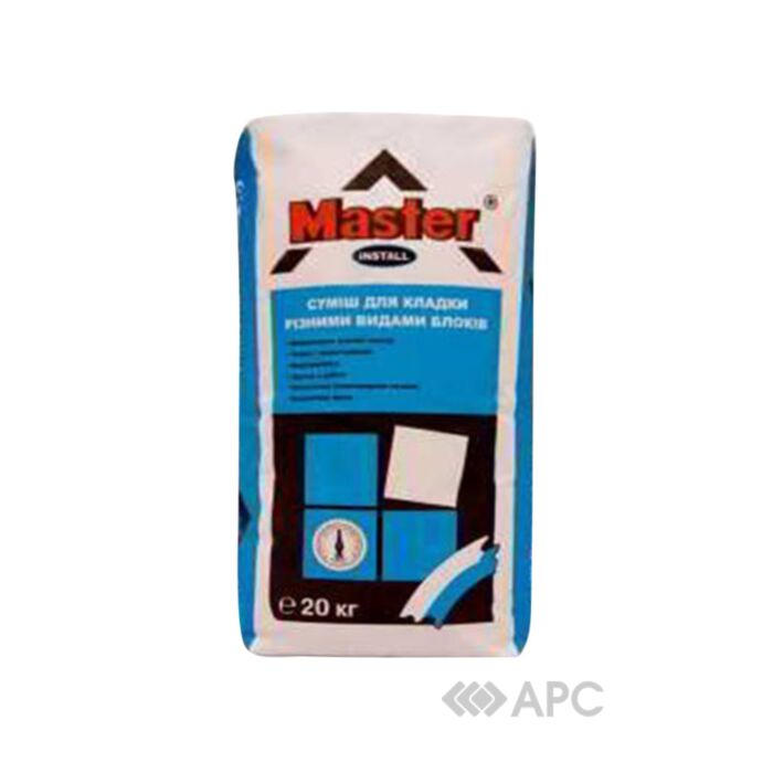 Клей для блоков Master Инстал 20 кг - готовый сухой клеевой состав для оштукатуривания и кладки стеновых бетонных, силикатных, известняковых и кирпичных блоков. Также его можно эффективно использовать для оштукатуривания поверхностей блоков.