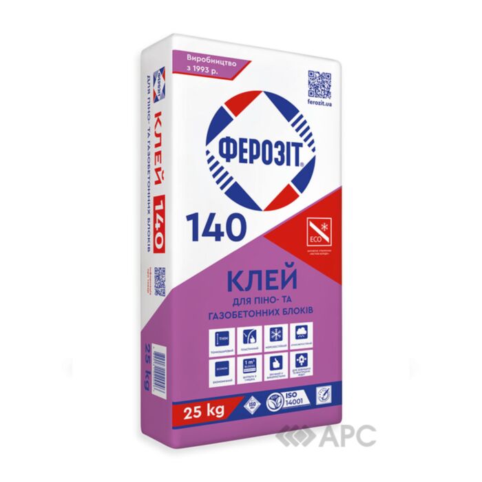 Клей для пено- газоблоков Ферозит 140 зимний 25 кг - готовый сухой клеевой состав для оштукатуривания и кладки стеновых бетонных, силикатных, известняковых и кирпичных блоков. Также его можно эффективно использовать для оштукатуривания поверхностей блоков.