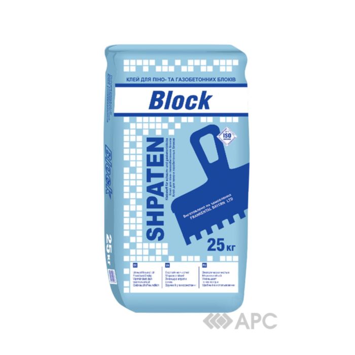 Клей для пено- и газоблоков Shpaten Blok 25 кг - готовый сухой клеевой состав для оштукатуривания и кладки стеновых бетонных, силикатных, известняковых и кирпичных блоков. Также его можно эффективно использовать для оштукатуривания поверхностей блоков.