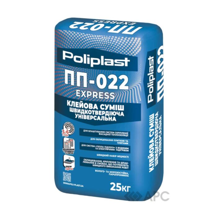 Клей универсальный Полипласт ПП-022 быстротвердеющий 25 кг - смесь строительная и модифицированная, которую используют в условиях, требующих особой быстроты выполнения работы. Подходит для горизонтальных и вертикальных оснований, характеризующихся дополнительной устойчивостью к деформациям (цемент, бетон, кирпич, гипсокартон).