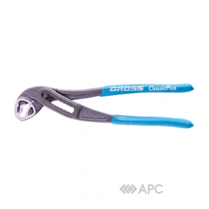 Предлагаем ознакомиться с моделью переставных клещей Gross 15723. Переставные (иногда их называют трубные) клещи наиболее популярны среди специалистов по установке сантехнических систем. Отличительной чертой конструкции являются две несимметричные составные части, как у других шарнирно-губцевых инструментов. Одна из частей движется по пазу, что позволяет подбирать расстояние между составными частями в зависимости от размера рабочей детали (трубы, гайки, болта). Следует сначала «открыть» клещи, передвинуть одну из частей в нужную позицию и зажать деталь.