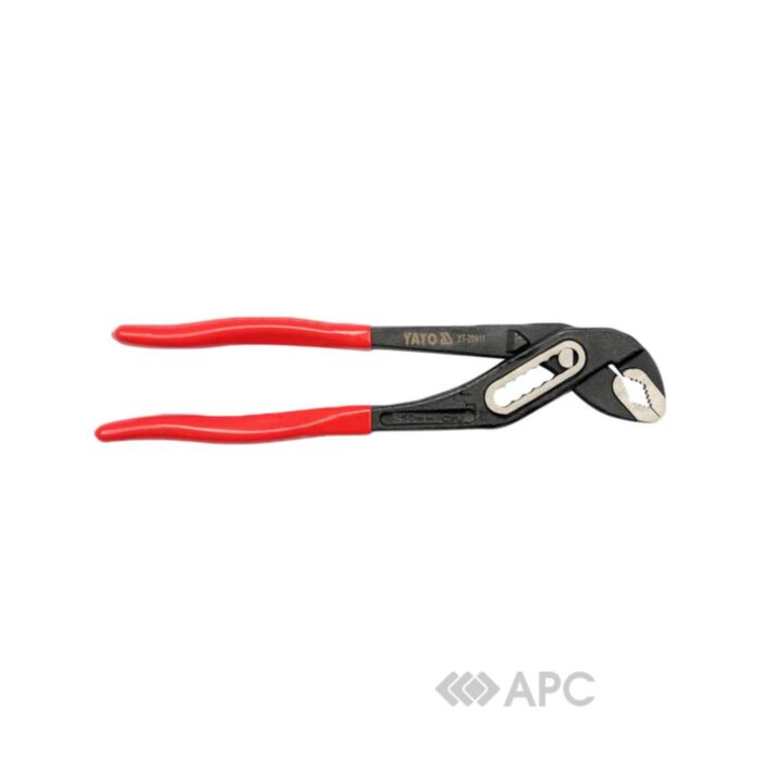 Предлагаем ознакомиться с моделью переставных клещей Yato YT-20911. Переставные (иногда их называют трубные) клещи наиболее популярны среди специалистов по установке сантехнических систем. Отличительной чертой конструкции являются две несимметричные составные части, как у других шарнирно-губцевых инструментов. Одна из частей движется по пазу, что позволяет подбирать расстояние между составными частями в зависимости от размера рабочей детали (трубы, гайки, болта). Следует сначала «открыть» клещи, передвинуть одну из частей в нужную позицию и зажать деталь.