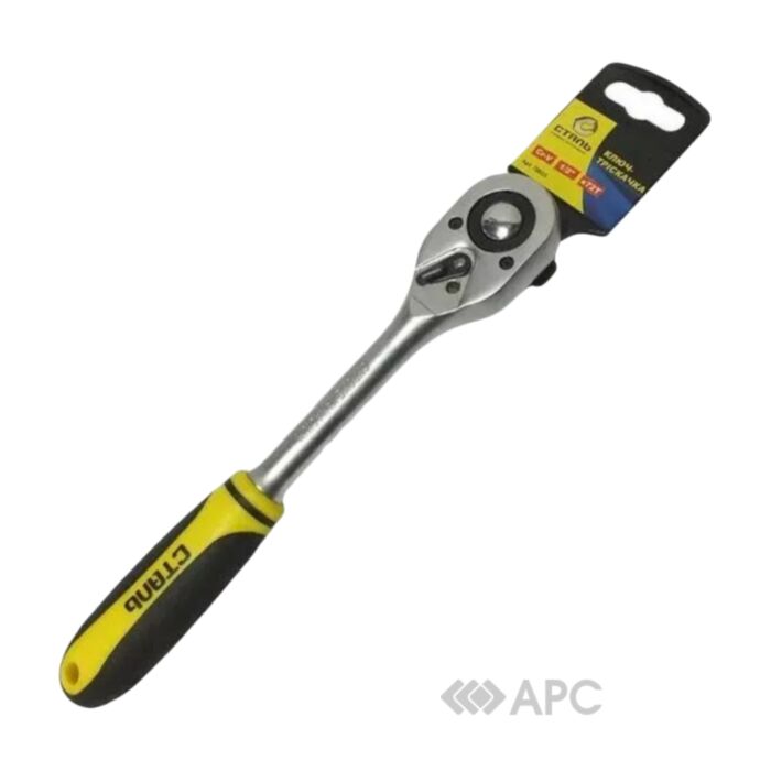 Трещотка необходим ручной инструмент для закручивания и откручивания гаек и болтов. Изготовлена из прочной стали, которая обеспечивает надежность, качество и долгий срок эксплуатации. Ключ-трещотка Сталь 70032 с храповым механизмом обеспечивает максимально комфортную работу. Трещотка позволяет быстро завинчивать и отвинчивать резьбовое крепление, а не переставляя ключ, а только поворачивая его. Угол поворота является небольшим благодаря наличию 72 рабочих зубцов. Представленная трещотка подходит для головок с посадочным квадратом 3/8".
