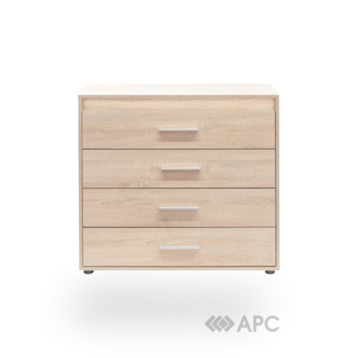 Благодаря простому дизайну этот комод прекрасно впишется во многих стилях интерьера. Тумба выполнена из прочной мебельной доски. Цвет изделия -дуб сонома.