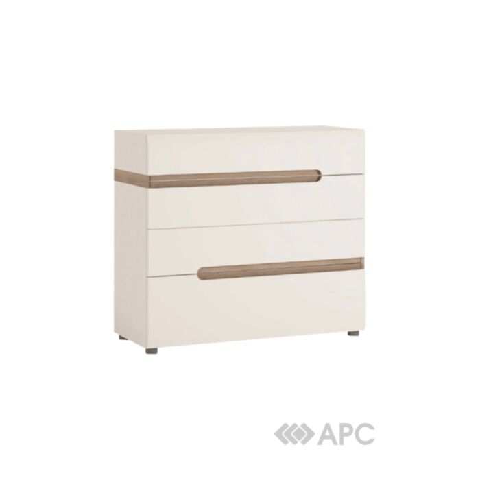 Низкий и стройный комод с удобными и вместительными ящиками. Благодаря системе накрытых направляющих каждое отверстие в ящике будет гладким и нежным.