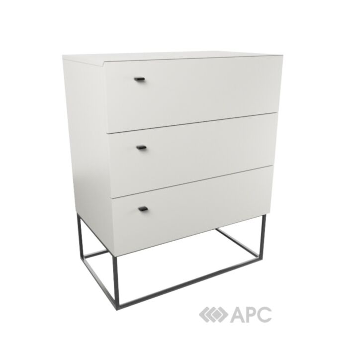 Металлические опоры окрашены высокостойкой порошковой краской. Видимые части изделия (фасад, топ, боковины) окрашены высококачественной краской производства Feyco (Швейцария), Italcolor (Италия). Часть верхнего фасада и топ имеют срез под углом в 45°.