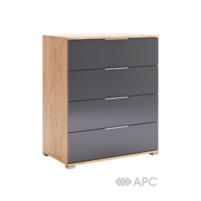 Комод MiroMark Луна 4S дуб крафт/мат лава - это воплощение сверхсовременного дизайна и прочности. Темный оттенок создает ощущение простора и свежести, а лаконичные формы придают комнате элегантности. Идеально сочетается с любым интерьером, обеспечивая не только эстетическое удовольствие, но и практичность в использовании. Корпус и фасад сделан из ДСП, добавляя изделию изысканности. Удобные трехсоставные шариковые телескопические направляющие обеспечивают легкое и плавное открывание. Комод оборудован раздвижным механизмом Hettich, что максимально использует пространство.