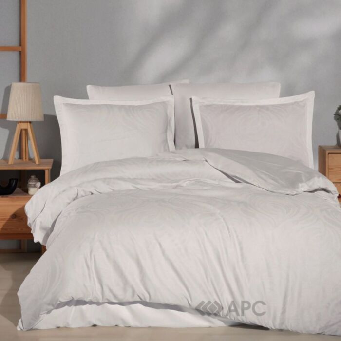 Комплект постельного белья Clasy Tarva v1 Ecru 200*220 см белый – это роскошный евро набор элитного постельного белья от турецкого производителя Clasy, который гарантирует комфортный отдых и придаст изысканности кровати. Изготовлен из высококачественного жаккард-сатина, состоящего из 100% натурального хлопка. Плотность ткани составляет 210TC, что свидетельствует о ее исключительной прочности, долговечности и износостойкости. Характерный рельефный рисунок, который придает комплекту особую элегантность и глубину, достигается благодаря сложному переплетению нитей, создаваемому на жаккардовых станках. Он практически не растягивается, устойчив к температурным перепадам и прекрасно сохраняет первоначальную окраску. В состав входят: пододеяльник размером 200х220 см, простыня 240х260 см и четыре наволочки: две 50х70 см и две 70х70 см, что позволяет полноценно и гармонично оформить спальное место.