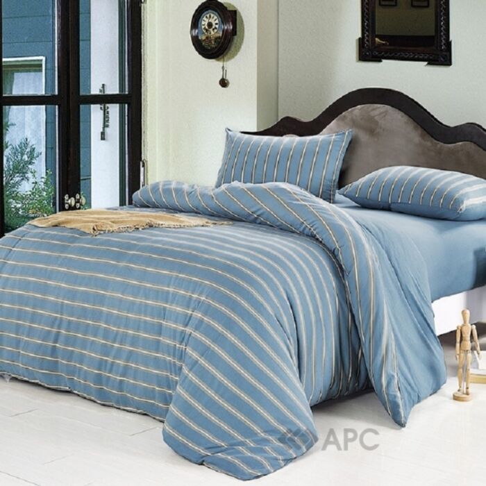 Однотонное постельное белье JR-16 La Scala из джерси трикотажа в синей гамме.
