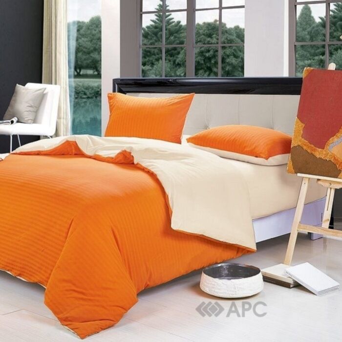 Двухцветное постельное белье JR-19 La Scala из джерси трикотажа в оранжево-кремовой гамме.