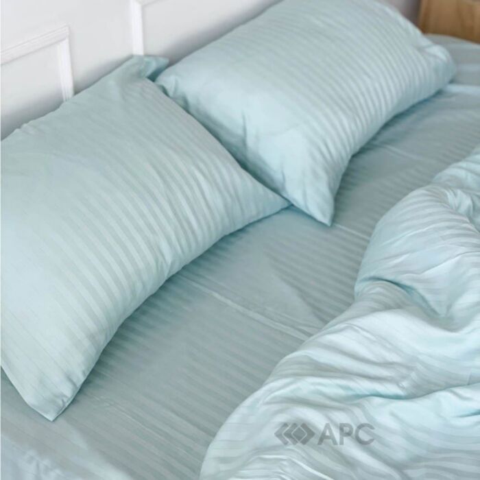 Комплект постельного белья Na Khmari cтрайп-сатин премиум Mint 200*220 изготавливается из 100% хлопка с плотностью 145 г/м. Разновидность сатина-жаккарда считается элитной тканью и характеризуется рисунком в виде полосок. Благодаря принту в перламутровых оттенках полотно дополняется особым блеском и эластичностью. Гладкокрашенная ткань не линяет и выдерживает до 500 стирок в горячей воде без ущерба для цвета. Материал не раздражает кожу благодаря своей приятной и мягкой текстуре. За своими характеристиками он напоминает шелк, но с более высокими эксплуатационными показателями. Постельный набор подарит своему владельцу здоровый сон, полноценный отдых и комфорт.
