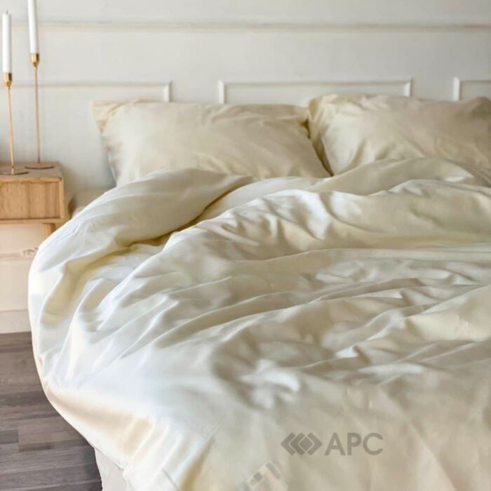 Комплект постельного белья Na Khmari элитный сатин Milk 200*220 см имеет в своем составе 100% хлопок с плотностью ткани 145 г/м, которая считается максимально высокой и износостойкой даже в процессе каждодневного использования. Элитный сатин обладает приятной для тела текстурой, не парит, характеризуется красивым блеском и отдаленно напоминает натуральный шелк. Благодаря своим характеристикам такой набор повысит качество сна и наполнит отдых не только комфортом, но и эстетикой.