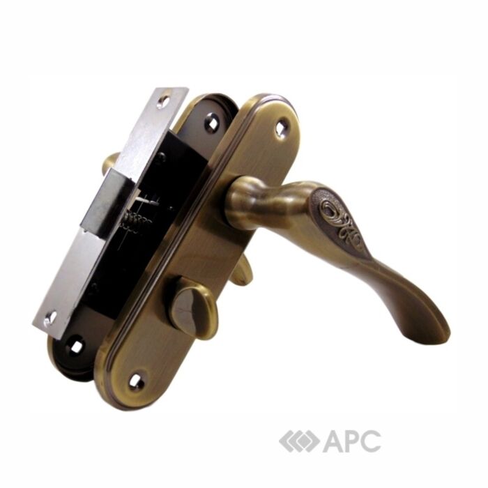 Замок межкомнатный с ручками ULK-50001ET AB UniLock без ключа серии WC, предназначен для установки на межкомнатные деревянные двери шириной от 30 мм до 40 мм, закрывает дверь только с одной стороны. Тип замка: врезной замок с ручками на планке. Тип механизма: санузловый. Открывание: универсальное (требуется перестановка ручек). Тип запирания: поворотник. Материал ручек: алюминиевый сплав. Материал планки: алюминиевый сплав. Длина ручки: 127 мм. Сечение квадрата: 8 мм