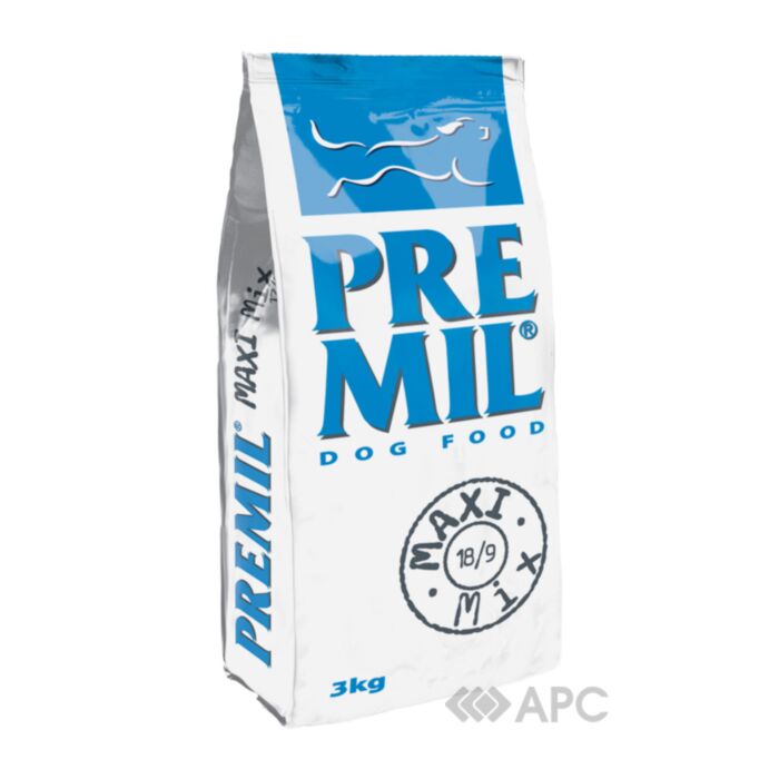 Корм для собак Premil Maxi Mix с мясом курицы 3 кг - это сбалансированный сухой корм, созданный для всех пород, с курицей в соотношении 18/9. Это полноценное питание премиум-класса, содержащее в себе все необходимые витамины, макро- и микроэлементы для здоровой жизни умеренно активных взрослых собак. Элементы, такие как омега-3 жирные кислоты (ALA, EPA, DHA), фруктоолигосахариды (ФОС), маннанолигосахариды (МОС), глюкозамин, хондроитин и лецитин, являются естественной композицией сырья и помогают поддерживать общее здоровье и благополучие животного. Ингредиенты включают кукурузу, дегидратированное куриное мясо (минимум 17%), растительные масла, мясной жир, свекольный жом, пивные дрожжи, обезвоженную печень, лецитин, хлорид натрия, витамины и минералы, селен, антиоксиданты.