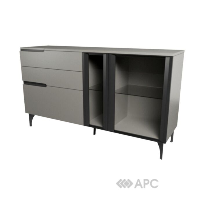 Благодаря своему оригинальному дизайну одновременно может использоваться и в качестве витрины: за стеклянными дверцами прекрасно разместится красивая посуда, памятные вещицы и любимые книги.