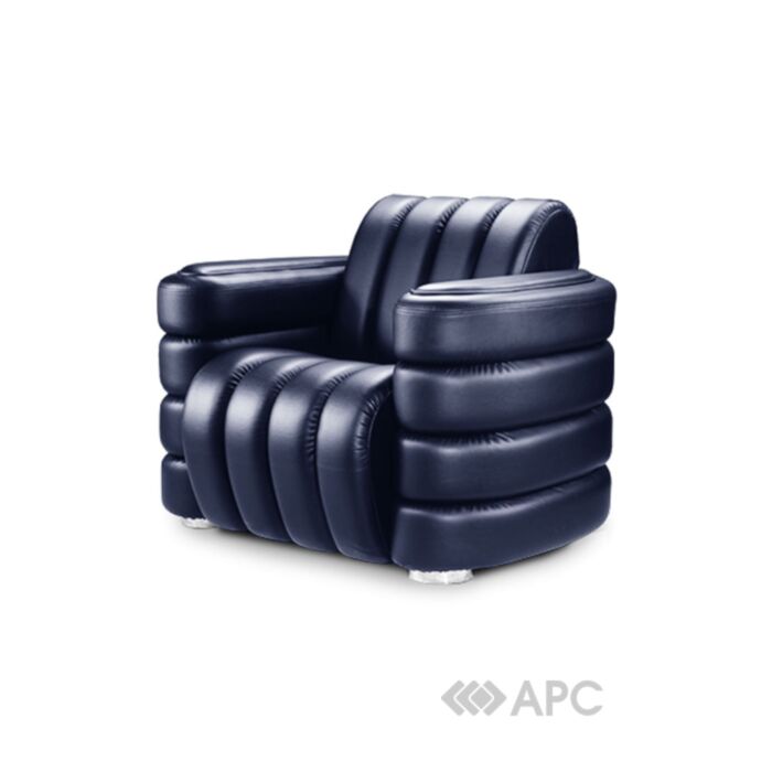 Особенности: сидение, спинка и подлокотники оформлены вертикальными и горизонтальными валиками из формованного ППУ, опоры выполнены из нержавеющей стали. Возможно исполнение в другом обивочном материале и цвете. Кресло XXL гармонично сочетается с диваном той же серии. Габаритные размеры, см: 112*102*85.