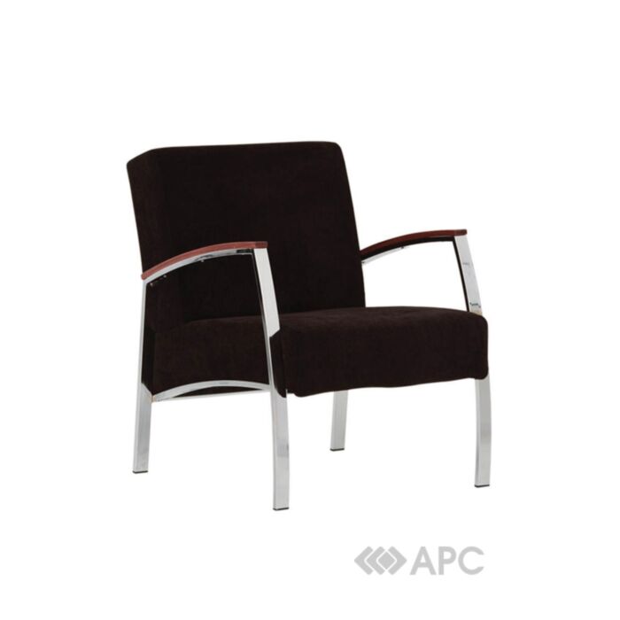 Стильное, комфортное кресло INCANTO chrome на металлической хромированной основе с обитым мягким сиденьем и спинкой, металлическими подлокотниками с деревянными накладками.