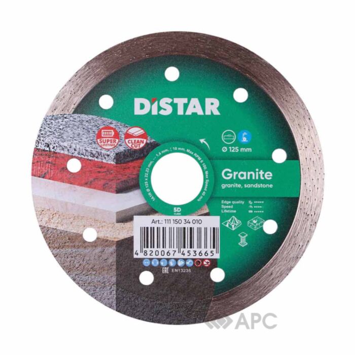 Круг алмазный Distar 125*1,4*8*22,2 Granite 11115034010 используется в том случае, когда есть необходимость в ровном срезе. Такая оснастка обладает повышенной прочностью и подходит для большинства видов материалов, что делает ее незаменимой в арсенале любого мастера, работающего с электроинструментами. Такая широкая сфера применения обусловлена повышенной надежностью, прочностью и износостойкостью расходного материала. Ультратонкая и уникальная форма алмазного шара, а также кольцевое ребро жесткости обеспечивают высокую продуктивность в работе. Вы сможете обрабатывать большие площади в короткие строки.