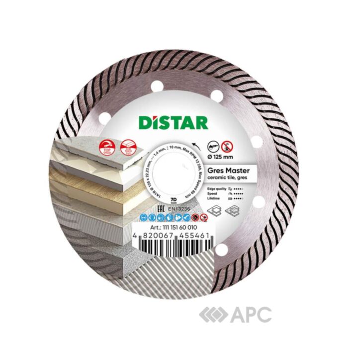 Круг алмазный Distar Gres Master 11115160010 1A1R 125*1,4/1*10*22,23 мм создан для сложных условий работы. Диск легко проникает в толстый материал, одновременно охлаждая зону резания. Высокая производительность обусловливает значительную скорость работы алмазного круга, недаром модель считается одной из самых быстрых среди дисков Distar. Диск Gres Master используется с угловыми шлифовальными машинами.