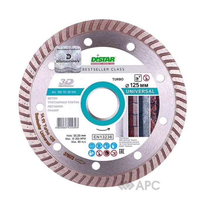 Круг алмазный Distar 125*2,2*8*22,2 Bestseller Universal используется в том случае, когда есть необходимость в ровном срезе. Такая оснастка обладает повышенной прочностью и подходит для большинства видов материалов, что делает ее незаменимой в арсенале любого мастера, работающего с электроинструментами. Такая широкая сфера применения обусловлена повышенной надежностью, прочностью и износостойкостью расходного материала. Ультратонкая и уникальная форма алмазного шара, а также кольцевое ребро жесткости обеспечивают высокую продуктивность в работе. Вы сможете обрабатывать большие площади в короткие строки.