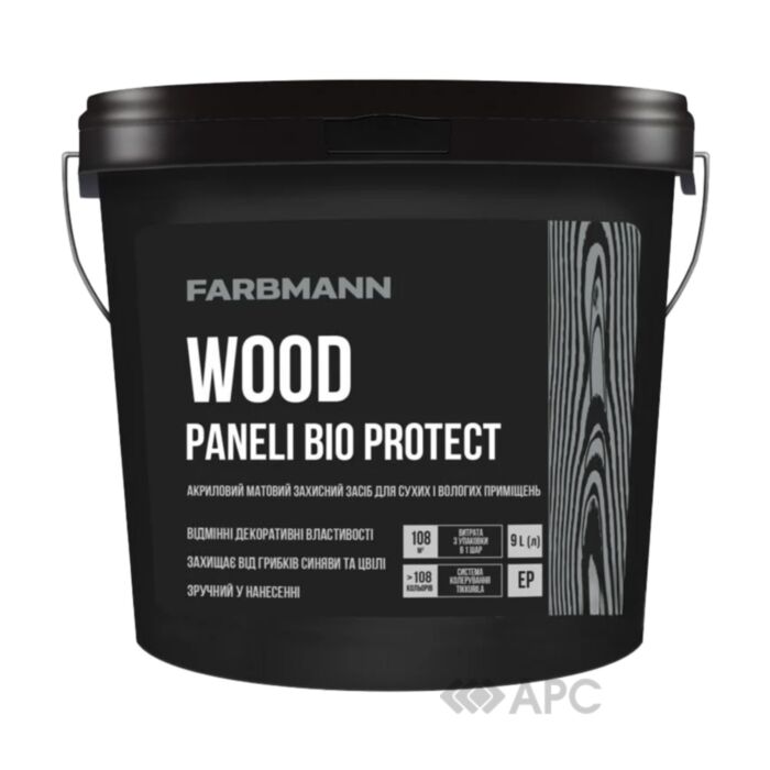 Лак для дерева Farbmann Wood Paneli Bio Protect база ЕР матовый - акриловое защитное средство, разработанное для отделки деревянных поверхностей в помещениях со сложным микроклиматом. Идеально подходит для обработки панелей, вагонки, блок-хауса, бруса из различных пород древесины, древесностружечных плит и других строительных материалов.