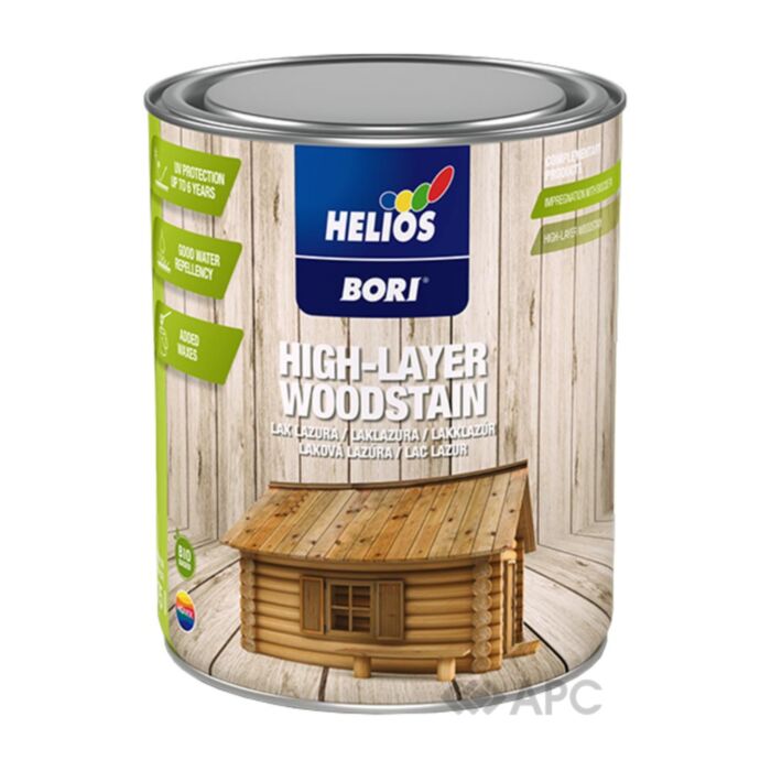 Лак-лазурь для дерева Helios Bori имеет отличные декоративные свойства и защищает деревянные изделия от воздействия внешней среды. Образует на поверхности стойкую блестящую защитную пленку, которая сохраняет цвет дерева, защищает от выгорания, не шелушится и не отслаивается. Содержит в составе натуральный воск, что обеспечивает водоотталкивающие свойства поверхностей. Экономный в использовании - 1 л лака достаточно, чтобы покрасить до 20 м² поверхности в один слой. Рекомендуется выдерживать интервал 24 часа между нанесением слоев и избегать прямых солнечных лучей при высыхании. Взбалтывать перед использованием. Подходит для наружных и внутренних работ, для окрашивания окон, дверей, ограждений, деревянной мебели и т.д.