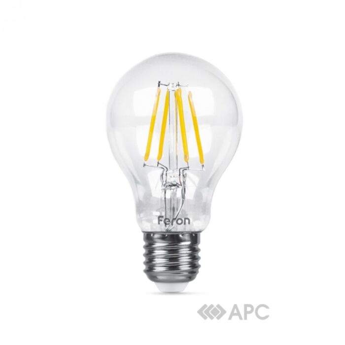 Лампа светодиодная Feron Filam LB-63 A60 230V 8W E27 2700K — модель светодиодной лампочки с самым распространенным размером цоколя E27. Данный типоразмер до сих пор является универсальным для большинства бытовых источников света. Лампочки на основе светодиодов выгодно отличаются от ламп накаливания. Они более экономичны, а света дают больше, практически не нагреваются, работают в большем диапазоне температур. Таким образом они прекрасно подходят не только для внутреннего, но и для наружного освещения даже в морозы. Лампочки Feron — качество, надежность и экономия.