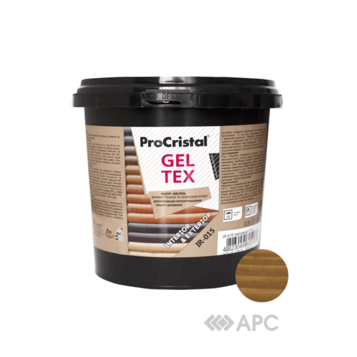 Лазурь для дерева ProCristal GelTex - это декоративное противогрибковое защитное средство, предназначенное для отделки деревянных поверхностей как внутри, так и снаружи помещений. Подходит для строганной и пиленой доски, ДСП, ДВП и МДФ.