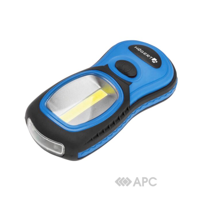 Фонарь светодиодный Hoegert HT1E402 — удобное и компактное инспекционное устройство мощностью 3 Вт с питанием от батареек типа ААА (в комплект не входят). Радиус основного освещения достигает 18 м, дополнительного фронтального — 16 м. Максимально эргономичное устройство производится из прочного нескользкого ABS-пластика. В корпусе есть магнит для установки на металлические поверхности и крючок для удобства фиксации. Идеально подходит для применения как в помещении (мастерской, гараже, СТО), так и на улице.