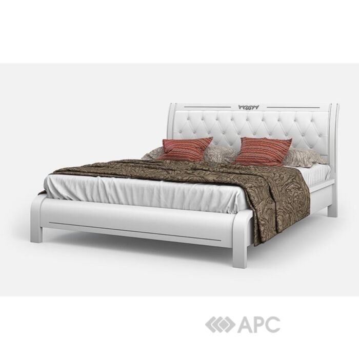 Двуспальная кровать «Княжна» с мягкой спинкой, оформленной переливающимися кристаллами Swarovski, даёт простор для чувств и наслаждения в спальной комнате. Оригинальный декор притягивает взгляд, а в повседневной жизни дарит комфорт благодаря своим эргономическим характеристикам.