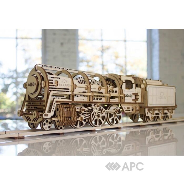 • Локомотив с тендером «UGEARS 460» вобрал в себя все технические решения примененные в предыдущих моделях. Своим экстравагантным видом со многими шестернями внутри, он олицетворяет весь период инженерной мысли 19 века. Времени, когда передовые страны соревновались в том, чей локомотив мощнее, больше и солиднее.