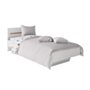 Кровати изготавливают из корпуса ЛДСП и ламелей. Спальное место под матрас может быть сплошным. Ламели делают из ценных пород дерева или фанеры, а для прочности их дополнительно усиливают металлом. Расстояние между ними зависит от модели: чем они расположены ближе друг к другу, тем больший вес могут выдерживать. Комплектация варьируется от 5 до 10 предметов.