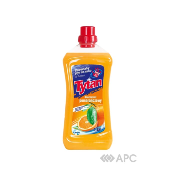 Универсальное моющее средство Tytan сладкий апельсин — бытовая химия широкого спектра действия. Идеально подходит для дезинфекции плитки и сантехники, удаления жира, грязи, пыли, пятен с любых поверхностей по всему дому. Деликатно очищает, не повреждая покрытие, уничтожает микробы и бактерии. Цитрусовый аромат возвращает ощущение свежести и нейтрализует неприятные запахи. Важным преимуществом продукции польской торговой марки является экономное использование: достаточно небольшого количества жидкости для генеральной уборки дома.