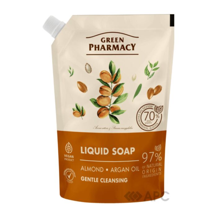Мыло жидкое Green Pharmacy Миндаль и аргановое масло дой-пак 460 мл — это универсальное средство, которое обеспечивает мягкую очистку, бережный уход за кожей рук и тела. В состав входят натуральные масла оказывающие благоприятное влияние на наш эпителий. Экстракты полезных масел ускоряют процесс регенерации, снимают воспаление, обогащают витаминами, а также защищают от отрицательного воздействия среды. Обладает допустимым уровнем pH. Объем дой-пака 460 мл.