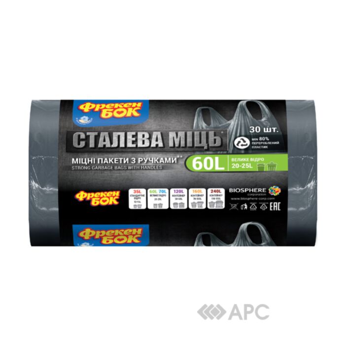 Мешки для мусора Фрекен Бок Стальная Мощь с ручками 60 л 30 шт