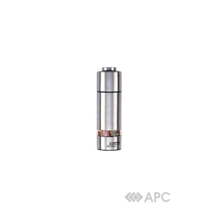 Мельница имеет элегантный, современный дизайн. Механизм изготовлен из износоустойчивой нержавеющей стали и имеет регулировочное колесико грубости помола. Мельница заполняется через отверстие в своей верхней части перцем-горошком не более, чем на 3/4 внутреннего объема. После наполнения отверстие следует обязательно закрыть. Для помола верхняя часть мельницы вращается попеременно по часовой стрелке и против нее; свежесмолотый перец при этом высыпается из нижней части. В этой части мельницы находится пластмассовое колесико, затягивание которого делает помол мелким, а ослабление - более грубым.
