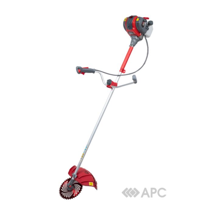 Мотокоса оснащена мощным бензиновым четырехтактный двигателем. Рукоятки велосипедного типа уменьшают вибрационные волны, а ремневые крепления гарантируют удобный и комфортный рабочий процесс. Головки триммера может работать с леской 2,4 мм. Бензиновый бак рассчитан на 0,65 литра топлива. Ширина захвата леской 43 см, ширина скашивания ножом 25,5 см.