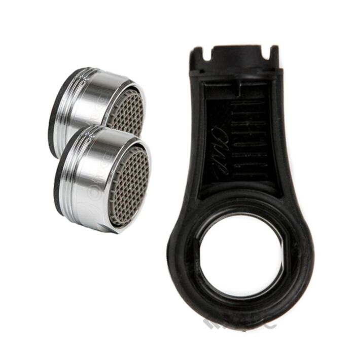 Набор аэраторов для смесителя Tucai 202001 М24 наружная резьба + ключ для монтажа является практичным комплектом, разработанным для обеспечения экономии воды и оптимизации потока в смесителях. В комплект входят два аэратора с наружной резьбой размера М24, что является универсальным стандартом для большинства смесителей, предназначенных для умывальника, ванны или кухни. Аэратор функционирует как цилиндрический сетчатый фильтр, смешивая водный поток с воздухом, что ограничивает фактический объем потребляемой воды при сохранении мощной и мягкой струи, которая меньше разбрызгивается. Аэраторы имеют хромированную блестящую поверхность и выполнены из качественного материала. Важной частью набора является специальный пластиковый ключ для монтажа и чистки, который позволяет легко установить или снять аэратор без использования дополнительных инструментов и без повреждения хромированного покрытия смесителя, что значительно упрощает обслуживание и удаление известкового налета.