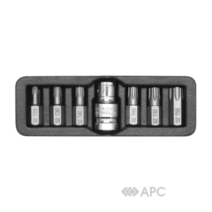 Набор бит с переходником YATO YT-0410 Torx 30 мм 1/2" 7 шт изготовлен из качественной стали повышенной прочности и обладает очень большим рабочим ресурсом, позволяющим использовать элементы на протяжении многих лет как в профессиональной деятельности, так и в быту. В комплект входят: биты с профилем Torx 25, 30, 40, 45, 50, 55 мм и переходник – 1/2". Все это помещено в удобном футляре.
