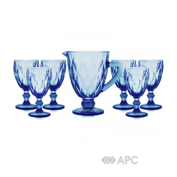 Набор Изумруд - это изысканный комплект синего цвета, который состоит из 6 бокалов и 1 кувшина. Изделия могут стать не только незаменимой частью быта, но и отличным подарком к любому празднику. Элегантные стаканы из цветного стекла отличаются декоративным дизайном и функциональностью, а также подходят для очистки в посудомоечной машине.