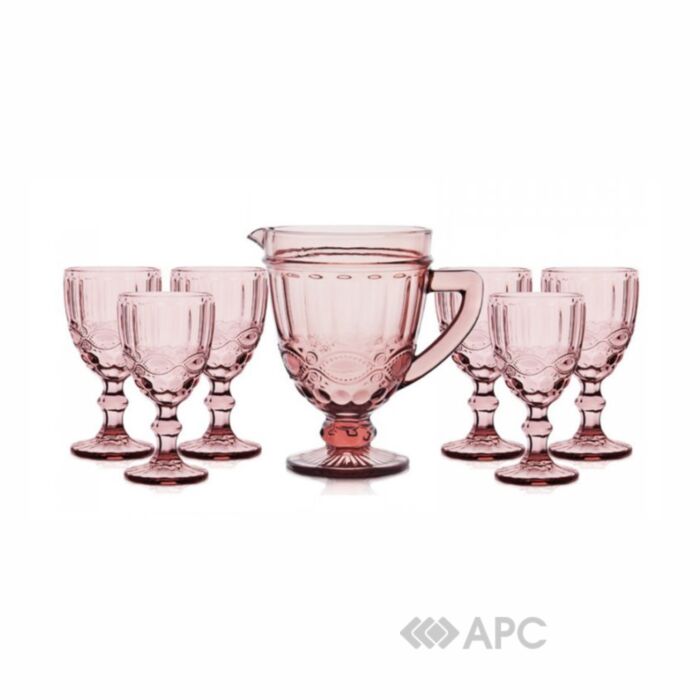 Набор Винтаж - это изысканный комплект синего цвета, который состоит из 6 бокалов и 1 кувшина. Изделия могут стать не только незаменимой частью быта, но и отличным подарком к любому празднику. Элегантные стаканы из цветного стекла отличаются декоративным дизайном и функциональностью, а также подходят для очистки в посудомоечной машине.
