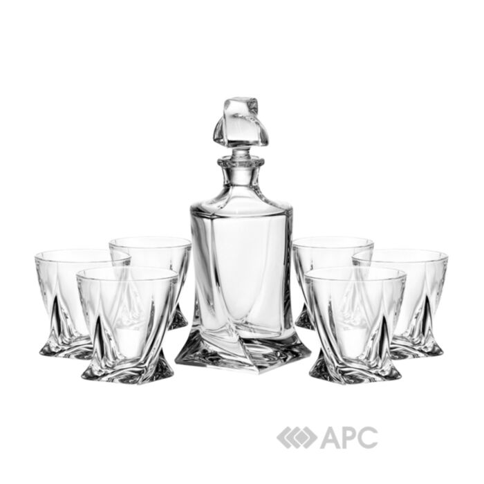 Bohemia – роскошная посуда из первоклассного, известного на весь мир стекла Чехии. Богемское стекло отличает прекрасное качество изделий и изящный внешний вид. Bohemia производит оригинальные бoкалы, изящные фyжеры, cтильные вaзы, нежный и искрящийся хрусталь. Набор для виски Bohemia Quadro b99999-99A44 отличается изысканым и необычным дизайном. Изделия без декора можно мыть в посудомоечной машине, пользуясь программой с низкой температурой.
