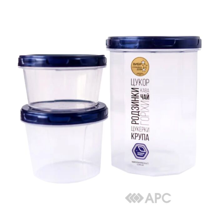 Набор емкостей для продуктов Народный продукт № 110 0,65 л + 0,2 л + 0,15 л предназначен для хранения сыпучих продуктов любых видов – от сахара и соли до разнообразных круп и бобовых. Крышка исключает попадание внутрь неприятного запаха, насекомых и т.п. Банк будет хорошо смотреться на вашей кухне благодаря стильному дизайну.