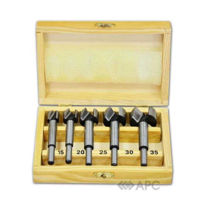 Набор фигурных фрез (сверл Форстнера) для древесины 5 шт, с хвостовиком цилиндрической формы. Используют для сверления отверстий в древесине мягких и твердых пород. Фрезы имеют твердосплавные лезвия, что гарантирует качество и скорость обработки материала. Деревянный пенал. Диаметры: 15 мм, 20 мм, 25 мм, 30 мм, 35 мм.