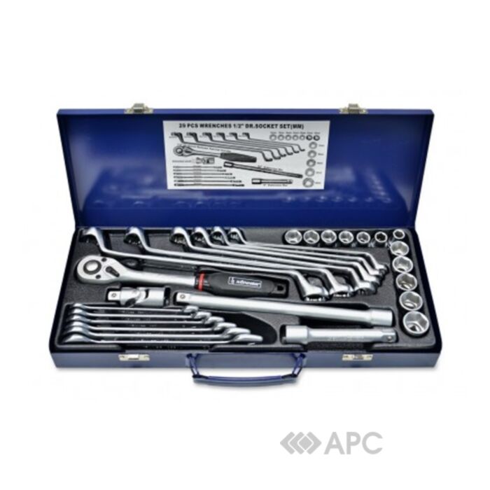 Универсальный набор головок и насадок на 28 позиций используется в процессе столярных и слесарных работ. Головки и насадки выполнены из высококачественной легированной хромом и ванадием стали. Компактный кейс надежно сохраняет инструменты и хранит их от проникновения влаги, солнечных лучей и др.