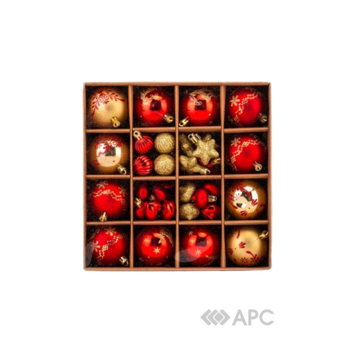 Набор елочных игрушек Elisey Рождественская симфония 9125-016 — это настоящий рождественский подарок, состоящий из 52 разнообразных украшений, которые наполнят елку и дом волшебной атмосферой. Этот роскошный комплект, изготовленный из высококачественного и безопасного пластика, отличается оригинальным дизайном в красно-золотых тонах, имитирующих зимние мотивы.