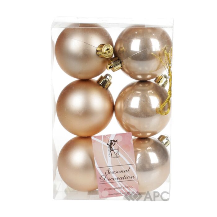 Набор елочных шаров BonaDi 147-008 6 см 6 шт бежевый бархат - праздничные шарики на елку, что является обязательным атрибутом новогодних и рождественских торжеств. Именно форма шара стала популярна еще в 17-м веке, а традиция украшать праздничное дерево различными предметами (не только декором) достигает значительно более отдаленного периода истории. И до сих пор без этого отделочного элемента сложно представить рождественское дерево. Ранее шарики изготавливали исключительно из стекла, выглядит, что и говорить, колоритно, но очень непрактично, особенно если в доме есть маленькие дети или домашние животные. Да и самому будет не особо приятно, расхаживая босиком по новенькой полу с подогревом, случайно наступить на стеклянный декор, падение которого вы не заметили. Современные пластиковые модели по своему внешнему виду ничем не уступают своим стеклянным предшественникам, но приятно радуют простотой и безопасностью эксплуатации. Пластиковый шар не разобьется; он легче стеклянного, а значит вы сможете максимально пышно украсить не только искусственное, но и живое дерево (ветви выдержат). С коллекциями BonaDi Шампань, Полярная ночь, Серебро, Арлекин, Барокко вы можете создать многоцветную композицию или придерживаться одной цветовой гаммы, чередуя глянцевые и матовые модели, также выглядит достаточно элегантно.