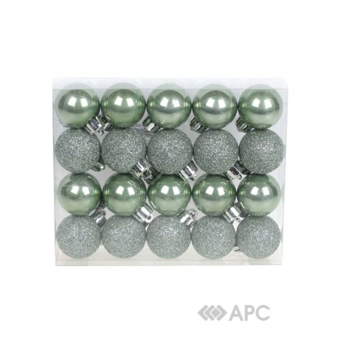 Набор елочных шаров BonaDi 147-987 — это компактный и изящный комплект из 20 миниатюрных украшений (диаметр 3 см), который идеально подходит для детализированных праздничных композиций, украшения небольших елок или создания акцентов на ветках. Шарики выполнены в оттенке зеленого шалфея, который придает декору свежесть и элегантную сдержанность. Для создания праздничного сияния в наборе гармонично сочетаются две текстуры (по 10 шт. каждой): гладкое перламутровое (глянцевое) покрытие и искрящееся глиттерное. Изготовлены из прочного пластика, что гарантирует их долговечность и легкость, позволяя создать изысканный и сбалансированный новогодний декор.