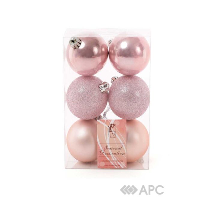 В набор входят пластмассовые елочные украшения цвет - розовый, 6 шт: мат, глиттер, перламутр - по 2 шт